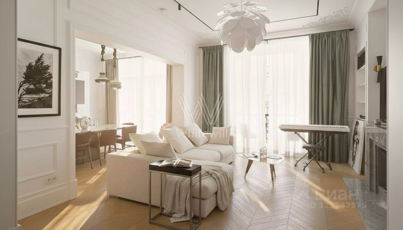 Уютная квартира с 2-мя спальнями общей площадью 150 м² в клубном доме делюкс-класса "Резиденция на Всеволожском" в Хамовниках. Выполнена премиальная дизайнерская отделка в лаконичных светлых тонах. Высокие потолки, панорамные окна в пол, большое количество света.