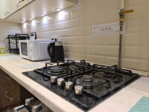 * Плита газовая, холодильник, чайник, набор посуды, СВЧ, кондиционер, посудомоечная машина