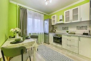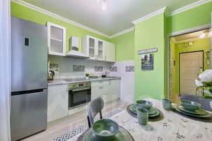 Здесь легко расслабиться после насыщенного дня: заварите чай на светлой кухне с зелёными акцентами, устройтесь на диване или в удобной кровати и почувствуйте себя как дома уже через несколько минут после заселения.