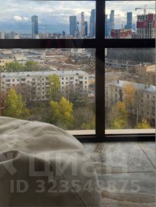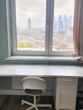 просторная гостиная с зоной кухни и выходом на большую лоджию с панорамным видом на Москву-Сити
