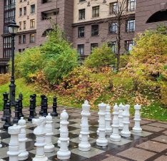 Оставляем вам добрые отношения с соседями, приватный двор с цветущими гортензиями, площадками, фонтаном и амфитеатром.