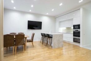• Мебель: диван, обеденный стол, 6 стульев, 2 кровати, торшер, консоль, 4 тумбочки, 1 комод, шкафы в каждой комнате, гардеробная