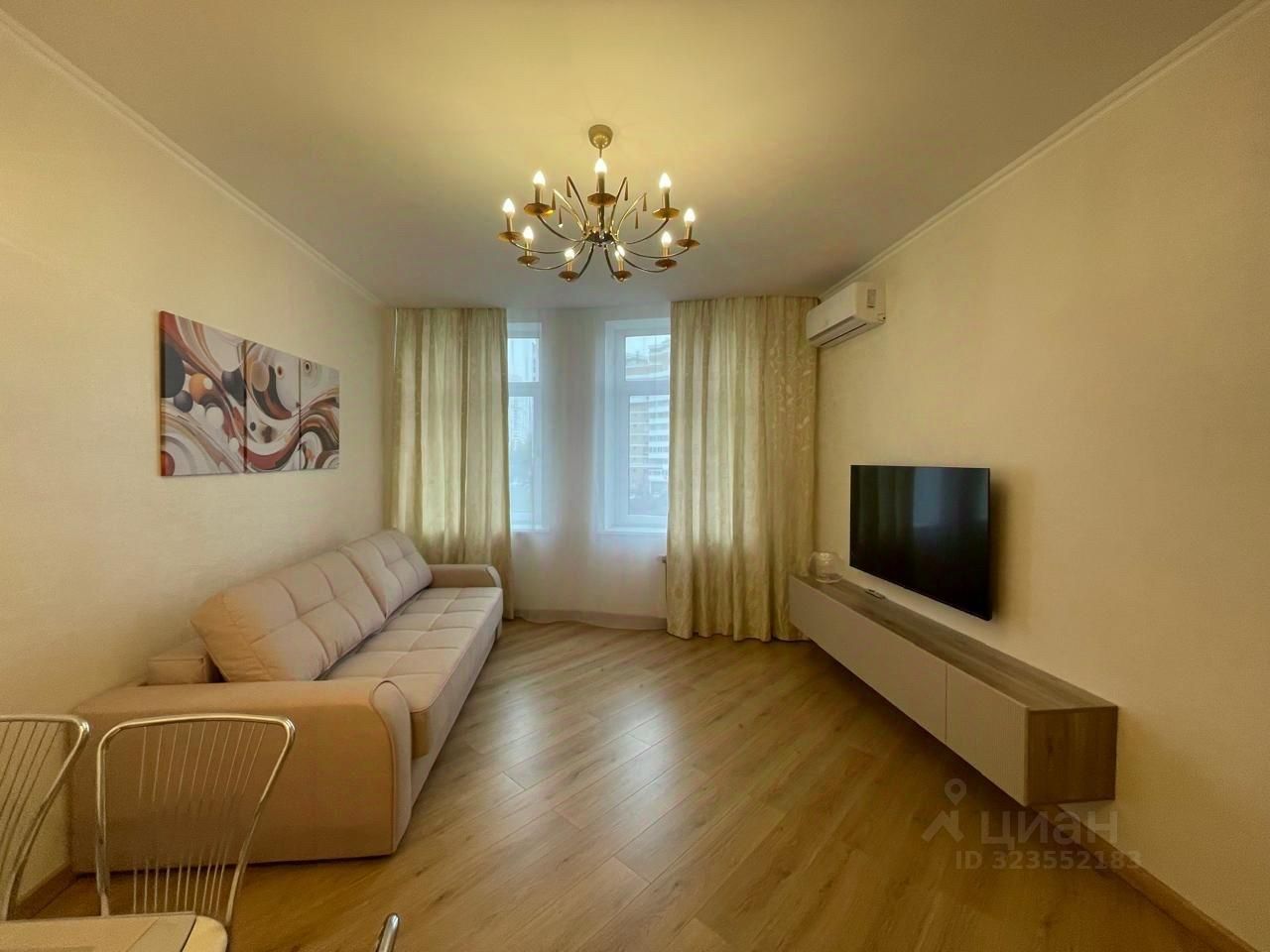 Сдается впервые уютная трехкомнатная квартира на четвертом этаже современного 25-этажного монолитного дома, построенного в 2006 году. Общая площадь квартиры составляет 80кв. м, из которых 45 кв. м приходится на две спальни и кухня-гостиная. Высота потолков — 3 метра.