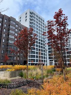 Очень зеленый двор, свежий воздух, воркаут площадка у подъезда, нет проблем с парковкой автомобиля, в любое время есть парковочные места снаружи, а также есть подземный паркинг. Рядом парк Андерсон на берегу реки.