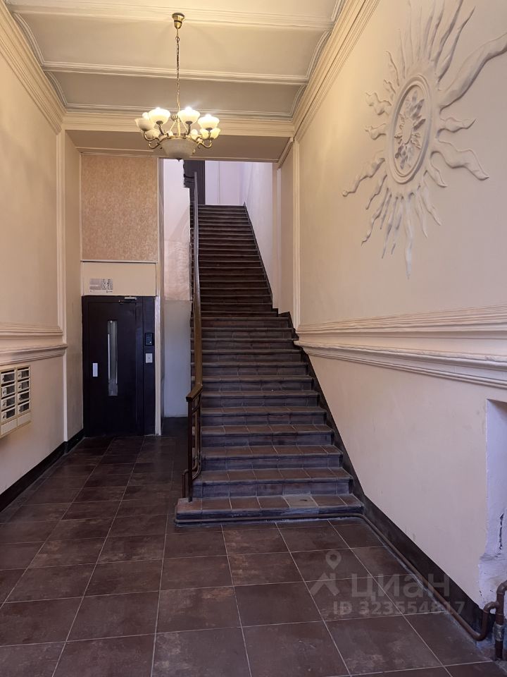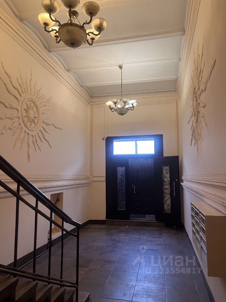 В подъезде стены украшены лепниной, а потолки величественными люстрами.