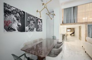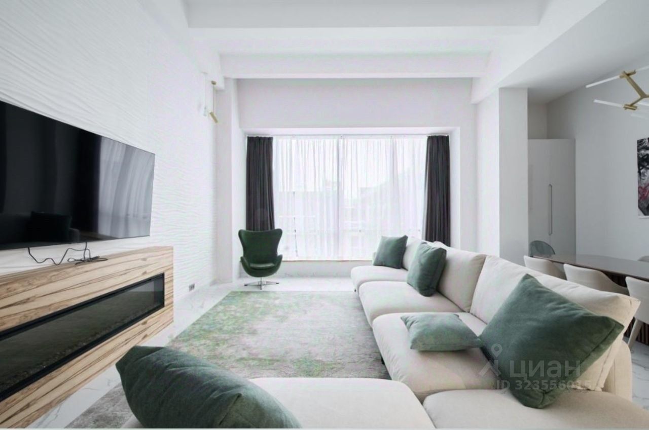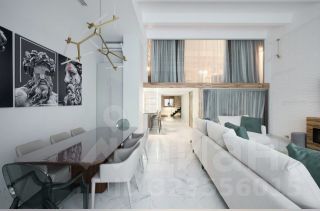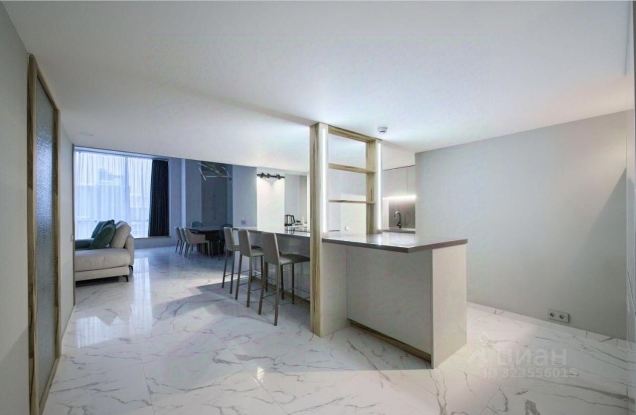 В квартире выполнен дизайнерский ремонт, высота потолков — 3,1 метра. Планировка включает, кухню-столовую, несколько санузлов и функциональные зоны хранения. Установлена современная мебель, вся необходимая бытовая техника (посудомоечная и стиральная машина, холодильник), кондиционеры, интернет, ТВ.