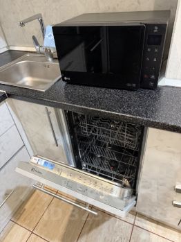 В квартире две изолированные комнаты: гостиная с лоджией и спальня, в спальне также оборудовано рабочее место. В спальне месяц назад купили новую кровать и матрас. Есть кондиционер. В гостиной большой раскладывающийся диван и большой шкаф для вещей. Раздельные ванная комната с ванной и туалет, есть стиральная машина. На кухне есть вся необходимая техника: плита, духовка, микроволновая печь, холодильник, посудомоечная машина. Есть даже вся посуда, если она нужна.