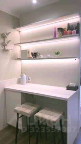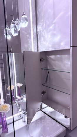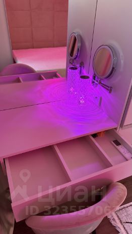 Есть фен для волос, много мест для хранения косметики и бытовой химии.