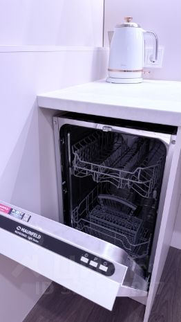 На кухне есть посудомоечная машина, микроволновая печь, электрическая плита , вытяжка, холодильник.