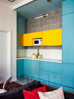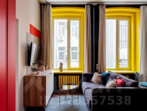 В апартаменте две комнаты - гостиная объединенная с кухней и спальня.