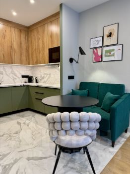 • Дизайнерский ремонт выполнен с использованием качественных материалов, что создает уютную и стильную атмосферу.