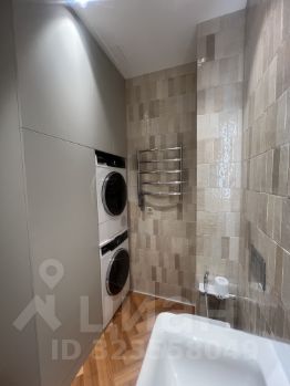 Санузел с ванной, также установлены стиральная и сушильная машины, шкаф для хозяйственных нужд.