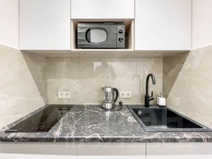 В апартаментах вся необходимая мебель и техника: стиральная машина, телевизор со Smart-TV, быстрый Wi-Fi, плита, микроволновка, холодильник, полный набор посуды, фен.
