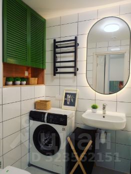 Санузел:дизайнерский шкафчик с полками,стиральная машина,электрополотенцесушиель,ящик для вещей.