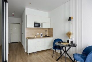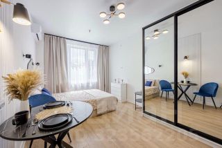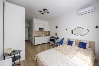 В квартире есть всё необходимое для комфортного проживания: мебель в комнате и на кухне, кондиционер, холодильник, телевизор и стиральная машина. Ванная комната оснащена ванной, поэтому можно расслабиться после долгого дня. Интерьер выполнен в современном стиле, что создаёт атмосферу уюта и гармонии.