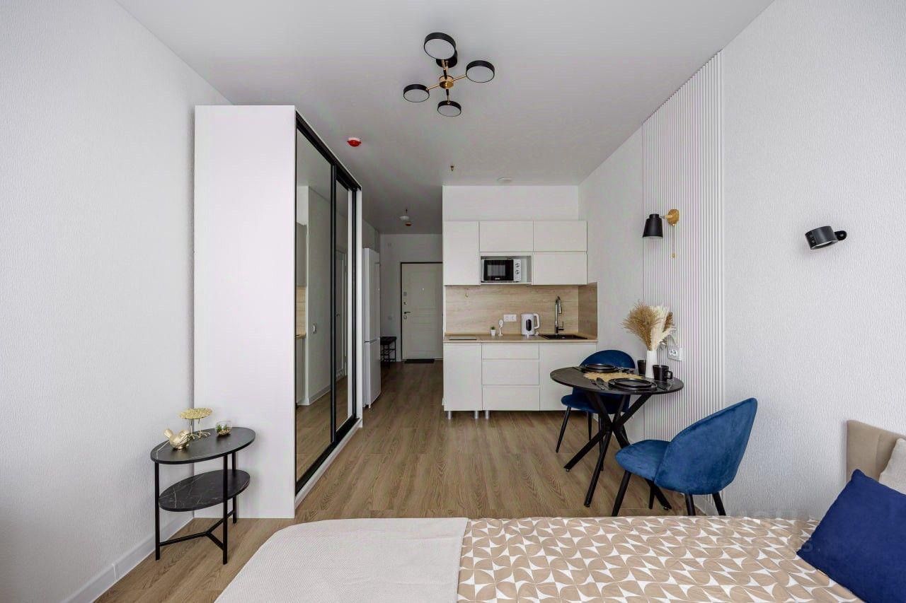 Сдаётся стильная квартира с дизайнерским ремонтом в современном жилом комплексе. Квартира расположена на 22-м этаже 28-этажного дома, окна выходят на улицу, поэтому вы сможете наслаждаться красивыми видами.