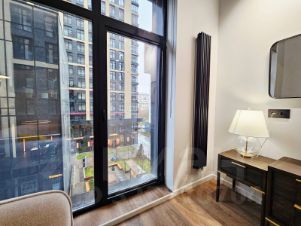 Уютная квартира, полностью оборудованная, на одного двух человек, без детей и животных, прекрасная транспортная доступность, вид из окна во двор, в комплексе вся инфраструктура, кафе магазины, фитнес, бассейн, ремонт дизайнерский закончен в сентябре 2025. Кухня оборудована шикарной техникой, посудомоечная машина, холодильник, столовые принадлежности. Спальня оборудована диван кроватью фирмы Дантон. Гардеробная большая с дверью находится в спальне. Гостиная зона оснащена двухметровым диваном и тв тумбой и совмещена с кухней, делая гостиную зону большой зоной для приема гостей. В квартире панорамные окна с видом на современный двор с ресторанами и магазинами. Ванная комната оснащена большой раковиной с зеркалом с подсветкой и стиральной машиной.