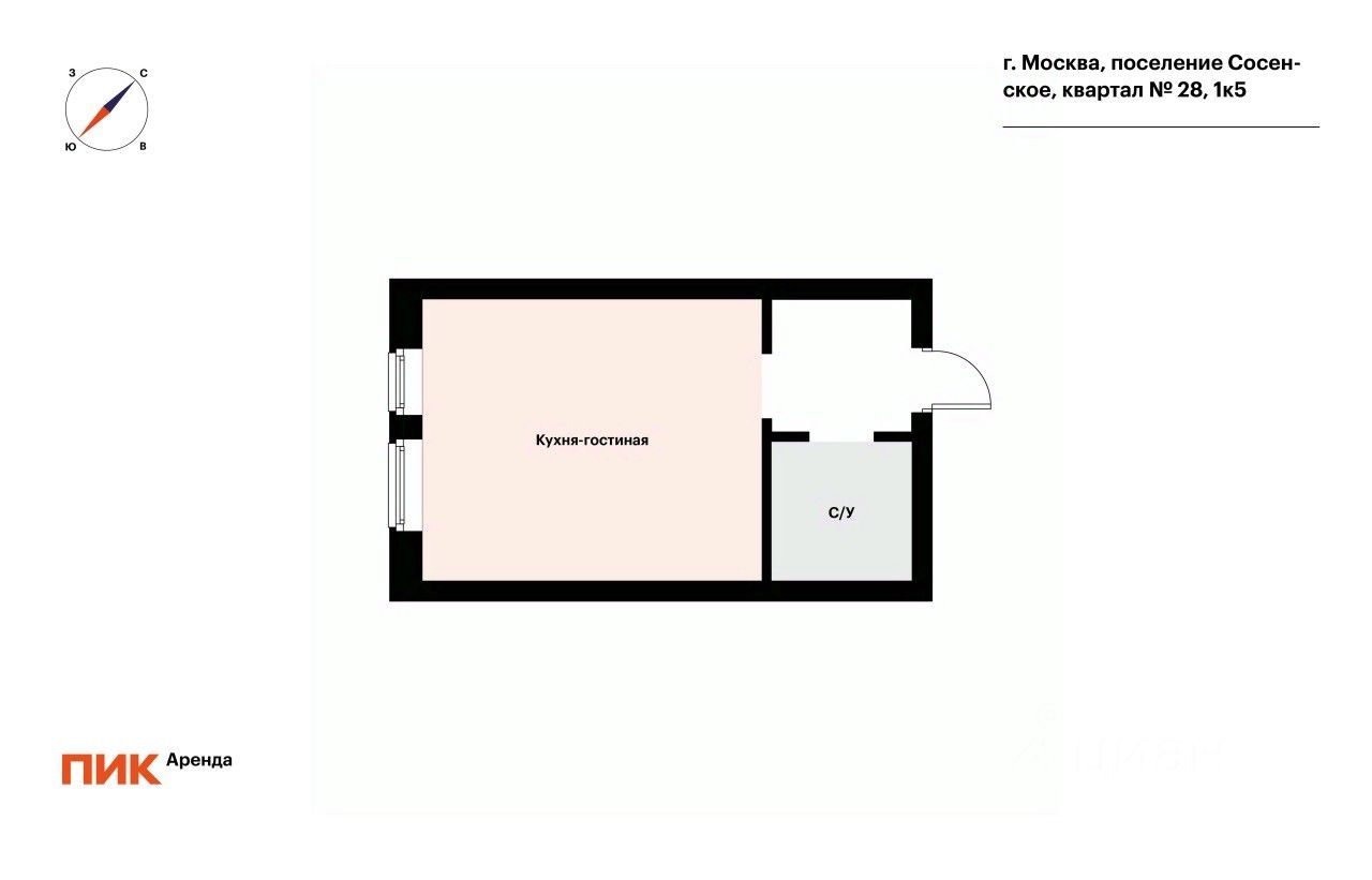 Сдаётся светлая студия с евроремонтом и совмещённым санузлом в ЖК Саларьево Парк, без депозита!