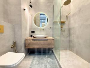 Квартира выполнена в дизайнерском стиле, что придаёт ей особый шарм и комфорт. Она полностью меблирована: мебель есть как на кухне, так и в комнате. Из техники — всё необходимое для комфортной жизни: кондиционер, холодильник, посудомоечная машина, телевизор и стиральная машина. Санузел совмещённый, с современной душевой кабиной. Окна выходят во двор, поэтому в квартире всегда тихо и спокойно.