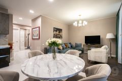 Квартира полностью меблирована и оснащена современной техникой: стиральная машина, посудомоечная машина, кондиционеры в каждой комнате, холодильник, духовка, микроволновка, чайник, тостер.