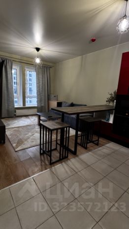 Квартира полностью мебелирована: двухспальная кровать в спальне и раскладывающийся диван в гостиной, компактный раскладной стол, барная стойка со стульями, два комода в спальне, шкаф в прихожей, журнальный столик.