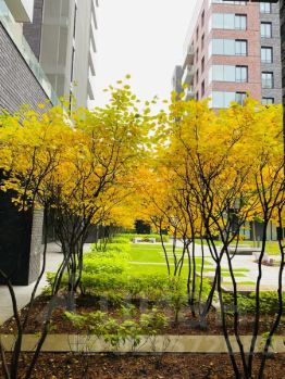Территория с ландшафтным дизайном, двор -парк без машин.