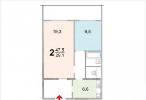 Сдается просторная двухкомнатная квартира общей площадью 47,5 м², жилая площадь — 29,1 м².По планировке: