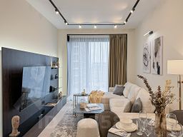 Современный дизайн. Квартира полностью меблирована, оснащена современным оборудованием.