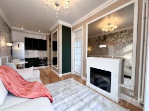 Квартира полностью готова для комфортного проживания. Имеется вся необходимая техника, в том числе посудомоечная машина. В спальне вместительный шкаф, двуспальная кровать с подъемным механизмом. В гостиной действующий электрический камин, раскладывающийся диван. Планируются шторы.