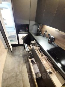 Техника: посудомоечная и стиральная машины, индукционная плита, микроволновка, телевизор, кондиционер, чайник, отпариватель.
