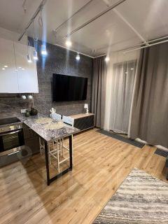 Предлагаем вашему вниманию современную Студию - апартаменты с только что выполненным дизайнерским ремонтом. (Никто не жил, вся мебель и бытовая техника новые). Кондиционер, теплый пол. Полноценная кухня с варочной поверхностью, духовым шкафом, посудомоечной машиной, встроенной микроволновой печью и холодильником.