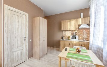 Апартаменты очень светлые и уютные за счет наличия двух окон, которые выходят во двор. Имеется отдельная быстрый WIFI, обеденная зона, расположенная у окна. В апартаментах имеется двухспальная кровать, ЖК- телевизор. Кухонная зона оснащена всей необходимой посудой и техникой для приготовления пищи. В санузле имеется стиральная машина.