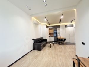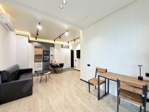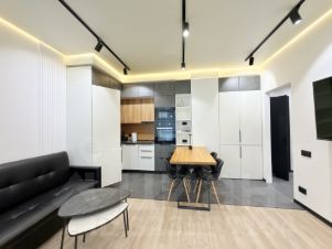 В квартире выполнен дизайнерский ремонт. Здесь есть всё необходимое для комфортного проживания: кондиционер, холодильник, посудомоечная и стиральная машины, телевизор. Мебель на кухне и в комнате позволяет сразу заехать и жить без лишних хлопот. Совмещенный санузел оснащён ванной, что особенно приятно для любителей расслабиться после долгого дня.
