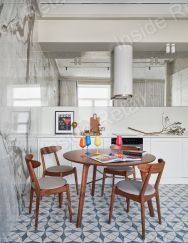Зеркальное оформление из состаренного зеркала кухонной стены расширяет границы пространства и создает дополнительную глубину.