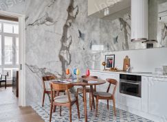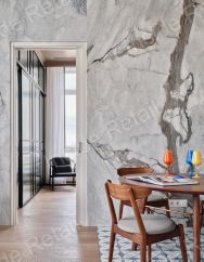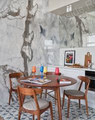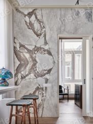 Одна стена покрыта натуральным мрамором (слэб).