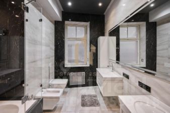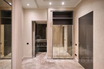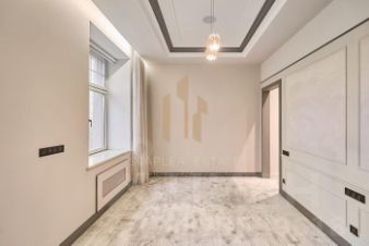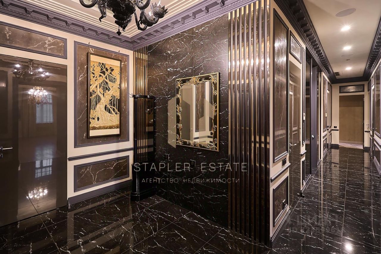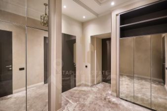 Безупречный стиль и технологичность: Интерьер квартиры выполнен в стиле современной классики, где каждая деталь говорит о безупречном вкусе. В отделке использованы только дорогостоящие натуральные материалы - благородный массив дуба и изысканный мрамор. Мебель от Roberto Cavalli и Mania, антикварные предметы от Zanaboni, керамика Villeroy&Boch и сантехника Philippe Starck & Duravit - каждый предмет интерьера является произведением искусства, создающим неповторимый облик. Высота потолков 3,8 метра усиливает ощущение простора, а эркерные окна наполняют пространство естественным светом, создавая неповторимую атмосферу. Современные системы кондиционирования, приточно-вытяжной вентиляции и тёплый пол обеспечивают идеальный микроклимат круглый год.