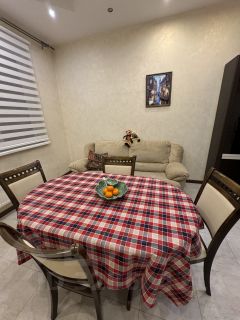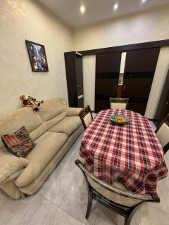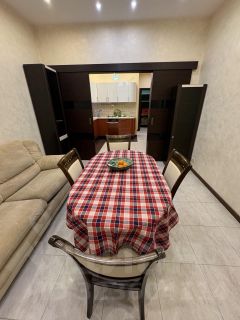 Просторная кухня-гостиная, где есть большой кухонный гарнитур со всей встроенной техникой . Стоит большой кухонный стол и диван, можно использовать как гостиную, есть раздвижные двери-купе, которые при необходимости разделят кухню и зону отдыха . Просторный балкон с двумя входами, гостиная-спальня. Также стоят кондиционеры в каждой из комнат ( 3 кондиционера). Одна спальня полностью оборудована всей необходимой мебелью. Из спальни выход на панорамный балкон.