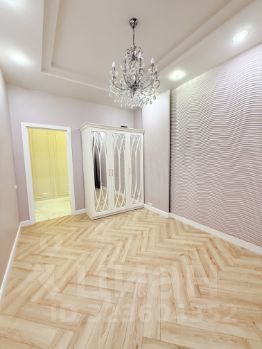 На полу уложена паркетная доска, применена многоуровневая подсветка, в санузле и на кухне керамогранит с теплыми полами.