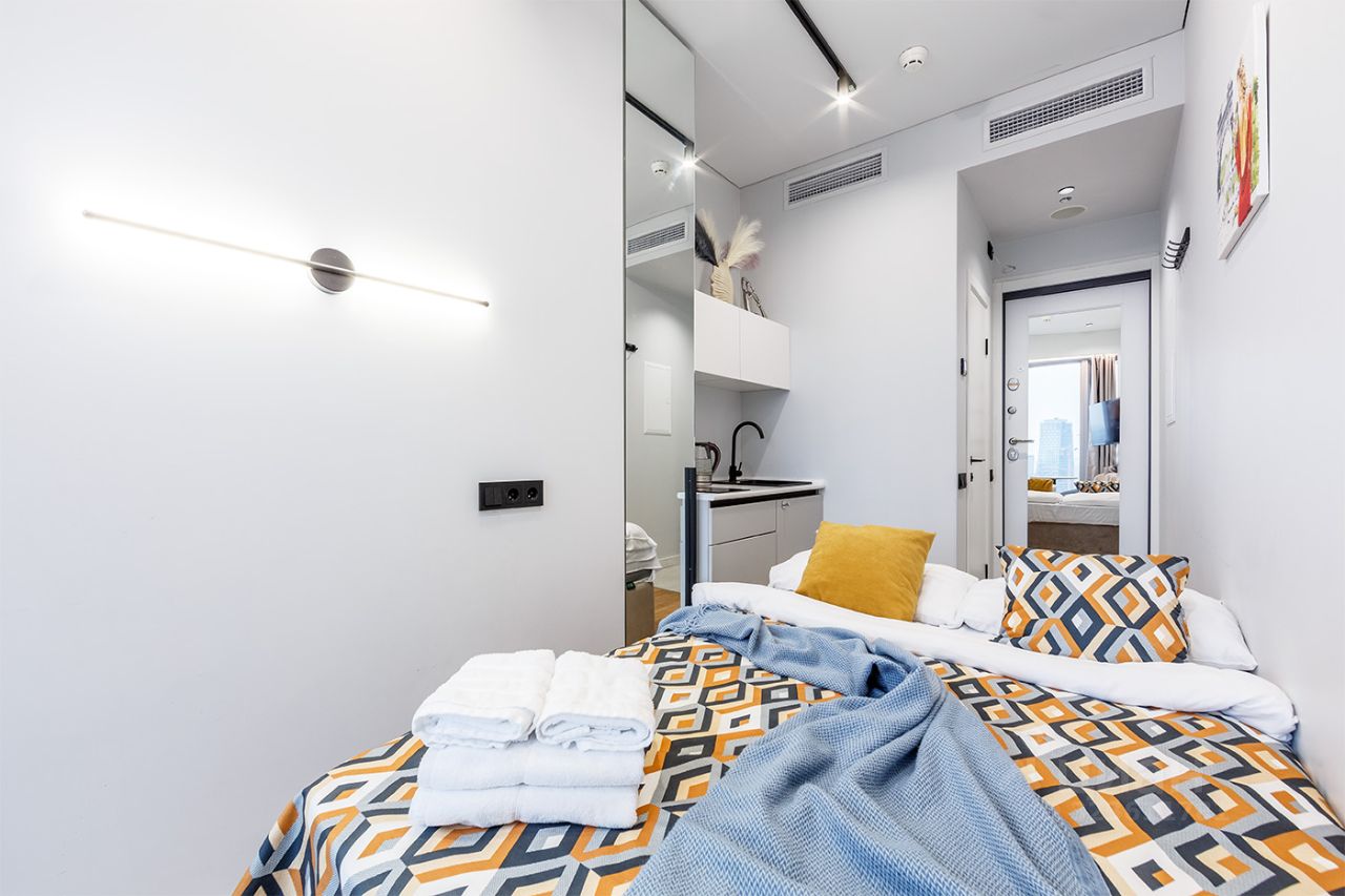 Это уютная студия, где все продумано до мелочей для Вашего комфортного отдыха! Идеальное место для деловых людей и туристов, кто хочет погрузиться в динамичный ритм столицы. Днем можно наслаждаться видом башен, а ночью увидеть их преображение на фоне освещенного города. Из окон апартаментов открывается шикарный панорамный вид на северо-запад Москвы: видно башни Сити, Москва-реку, инфраструктуру города и многое другое.