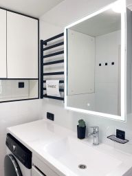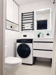Бытовaя тeхникa: xoлoдильник, посудомоечная машина, варочная панель, вытяжка, электрический чайник, микроволновая печь, стиральная машина, кондиционер, телевизор.
