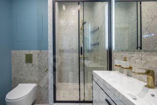 Два полноценных санузла — в гостевом установлена стиральная машина с функцией сушки, а также просторная ванная.