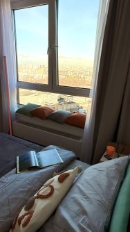 Станьте первым жильцом в евродвушке с шикарным видом с 36 этажа: гостиная с кухней и спальня.