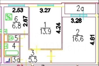 - Площадь комнат: 16,6 и 13,9 кв.м. (изолированные).