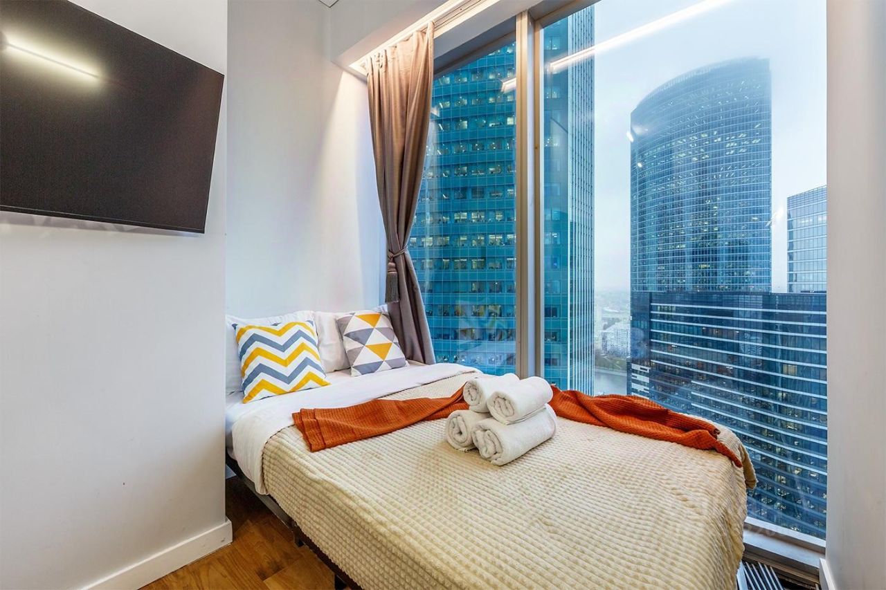 Это уютная студия, где все продумано до мелочей для Вашего комфортного отдыха! Идеальное место для деловых людей и туристов, кто хочет погрузиться в динамичный ритм столицы. Днем можно наслаждаться видом башен, а ночью увидеть их преображение на фоне освещенного города. Из окон апартаментов открывается шикарный панорамный вид на северо-запад Москвы: видно башни Сити, Москва-реку, инфраструктуру города и многое другое.