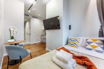 Апартаменты оборудованы современной итальянской мебелью, необходимой техникой и электроникой. Система климат - контроль, бесплатный безлимитный Wi-Fi, шторы. Наличие всей необходимой посуды. Телевизор с подключением к wi-fi и с функцией показа экрана Вашего телефона на ТВ Smart-TV.