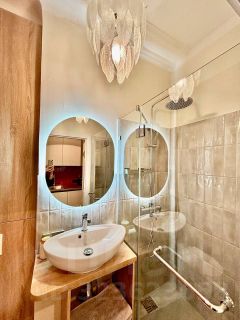 Комфортная студия с трехметровыми потолками, после ремонта никто не жил. Функциональная планировка и продуманный дизайн. При ремонте использовались дорогие отделочные материалы. Спокойные природные оттенки отделки стен способствуют комфортному отдыху. Просторная студия-гостиная, с удобным зонированием для отдыха и для готовки.