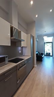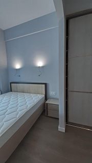 Интерьер в европейском стиле, 2 шкафа-купе, диван, двуспальная кровать, рабочий стол, вся крупная и мелкая бытовая техника, включая кондиционер, посудомойку, кофемашину, пылесос, полный набор посуды.