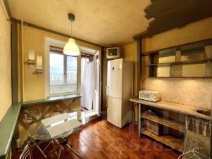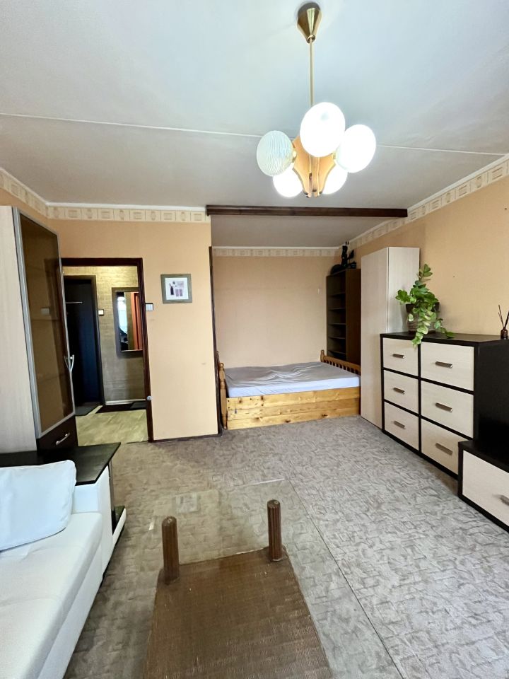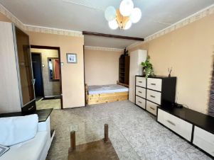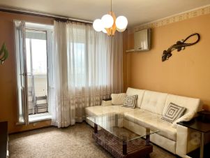 Квартира с косметическим ремонтом в отделке использованы натуральные материалы камень и дерево. В комнате большой угловой диван, стеклянный журнальный столик, шкаф и комод, а так же тумба под телевизор, двуспальная кровать в алькове, есть возможность разделить жилое пространство. На кухне холодильник, свч, плита с духовкой. Квартира укомплектована необходимой техникой: кондиционер, холодильник и стиральная машина. Санузел раздельный, с ванной. Два балкона из комнаты и из кухни что делает квартиру еще более привлекательной для проживания и дает дополнительное место для жизни и возможных вариантов применения.
