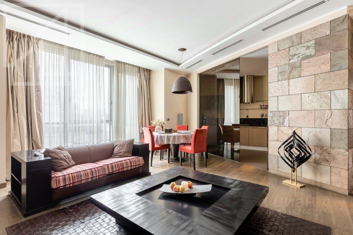 Планировка: гостиная, кухня-столовая, мастер-спальня со своей ванной комнатой и гардеробной, две гостевые спальни, два санузла, кладовая. Из гостиной обустроен вход на просторную, уютную террасу с видом на Москва реку. Ремонт выполнен в современном стиле. Квартира полностью меблирована и оснащена всей необходимой техникой для комфортного проживания.