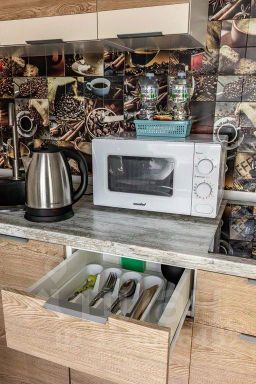 В квартире есть вся необходимая бытовая техника (холодильник, стиральная машина, кондиционер, варочная панель, телевизор, микроволновая печь, эл. чайник, утюг, фен), комплект посуды для приготовления и приема пищи, гладильная доска, напольная сушилка для белья, в квартире постоянно горячая вода (установлен водонагреватель), Wi-Fi.